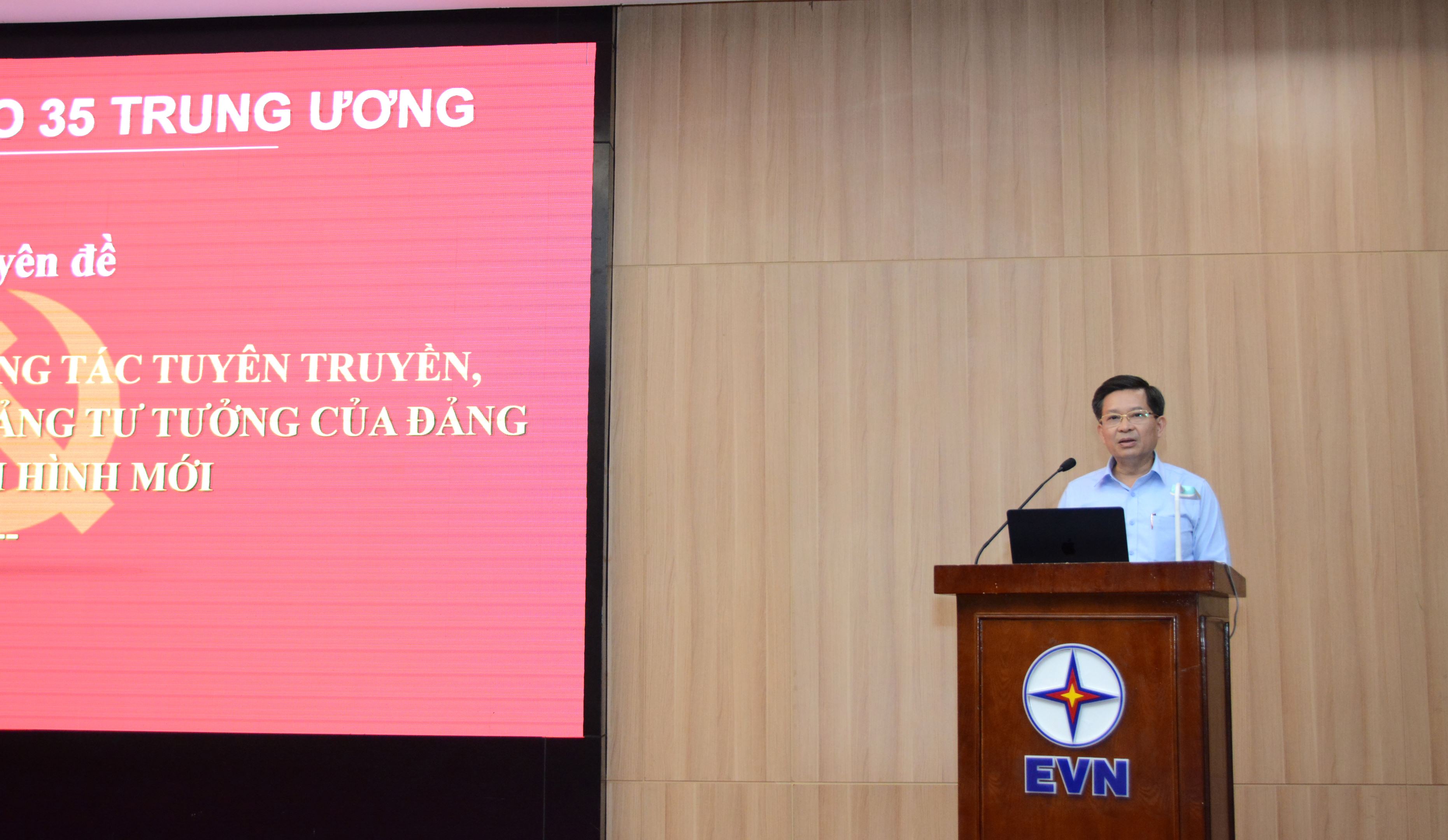 Phó chủ tịch Công đoàn Điện lực Việt Nam Nguyễn Kim Thanh trình bày chuyên đề Triển khai nhiệm công tác tuyên giáo năm 2026 của Công đoàn Điện lực Việt Nam.