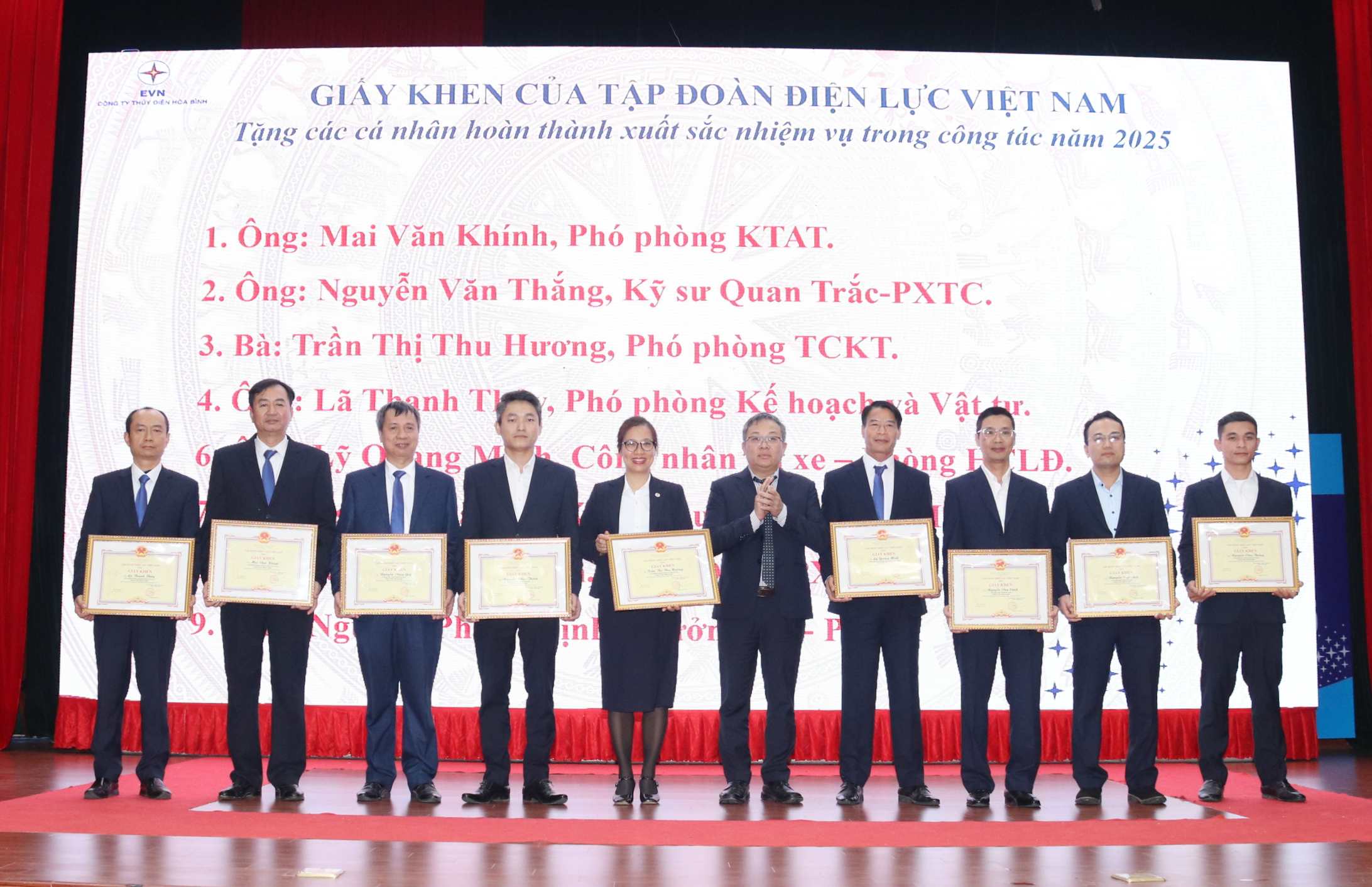 Dịp này, các tập thể, cá nhân có thành tích xuất sắc trong công tác năm 2025 cũng đã được nhận khen thưởng của Tập đoàn Điện lực Việt Nam và Công ty Thủy điện Hòa Bình.