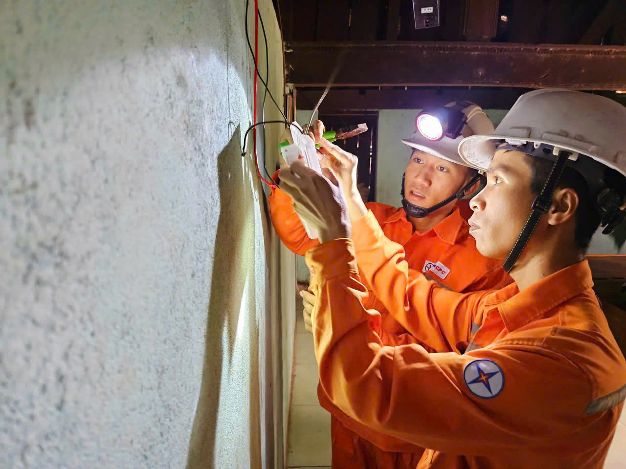 Nhân viên Điện lực lắp đặt thiết bị điện trong nhà cho các hộ dân