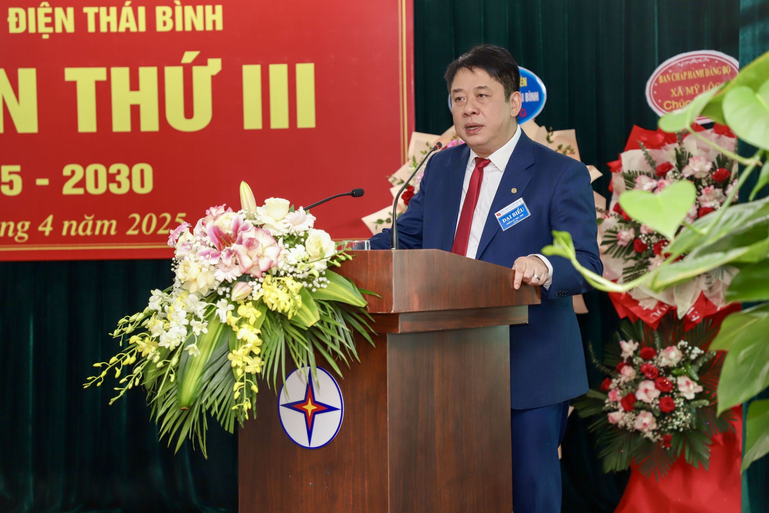 Phát biểu chỉ đạo, đồng chí Nguyễn Anh Tuấn – Phó Bí thư Đảng ủy, Tổng giám đốc Tập đoàn Điện lực Việt Nam – ghi nhận và biểu dương những kết quả Đảng bộ Công ty Nhiệt điện Thái Bình đã đạt được trong nhiệm kỳ qua. Trong giai đoạn tới, yêu cầu phát triển của đất nước và ngành Điện ngày càng cao, đòi hỏi các đơn vị phải đổi mới tư duy quản trị, nâng cao năng lực lãnh đạo và định vị chiến lược rõ ràng. Theo đó, Đảng bộ và Ban lãnh đạo Công ty cần xác lập tầm nhìn dài hạn, phù hợp với định hướng phát triển chung của EVN; xây dựng các mục tiêu cụ thể, có trọng tâm, khả thi và bám sát thực tiễn thị trường; tránh đặt ra các mục tiêu dàn trải hoặc mang tính hình thức, thiếu tính lượng hóa và không gắn kết với chiến lược tổng thể.