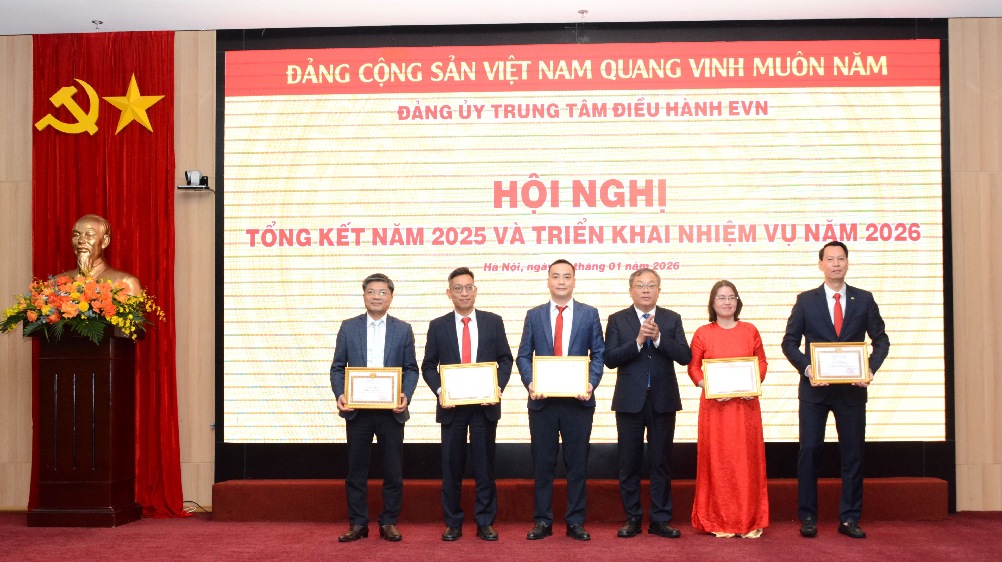 Đồng chí Phạm Hồng Phương – Bí thư Đảng ủy Trung tâm Điều hành EVN trao tặng Giấy khen cho các chi bộ đạt danh hiệu “Hoàn thành xuất sắc nhiệm vụ” năm 2025