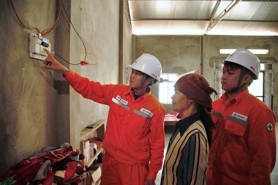 Nhân viên Đội Quản lý điện lực khu vực Bảo Yên kiểm tra điện trong nhà bà Trần Thị Nhình, người dân tại khu dân cư Cao Lan