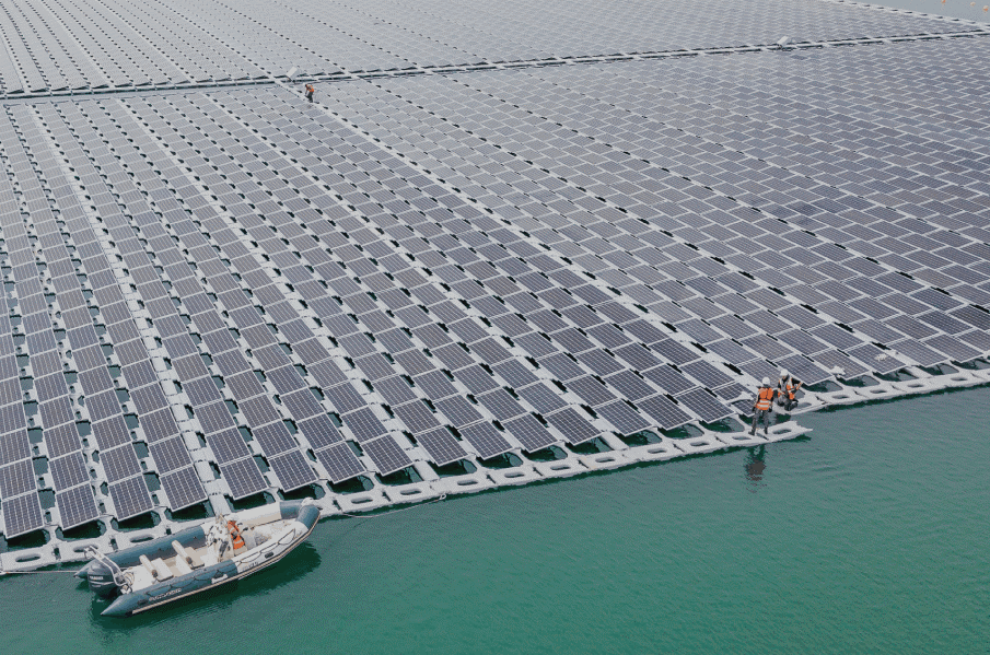 Điện mặt trời nổi ở Trung Quốc. (Ảnh: AFP)