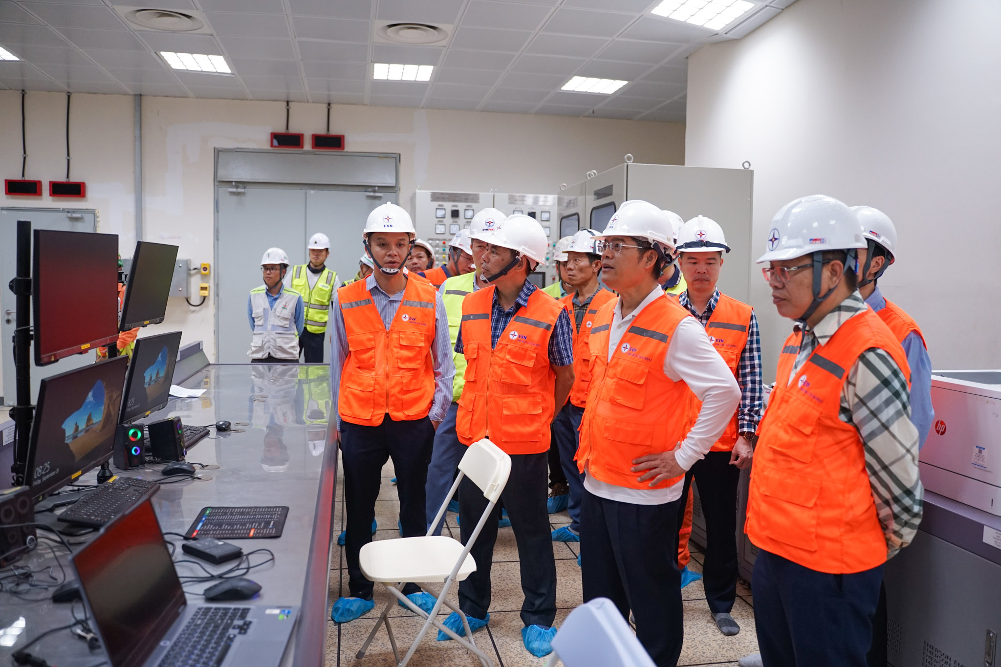 Phó Tổng giám đốc EVN Nguyễn Tài Anh kiểm tra phòng điều khiển trung tâm Nhà máy Nhiệt điện Quảng Trạch 1