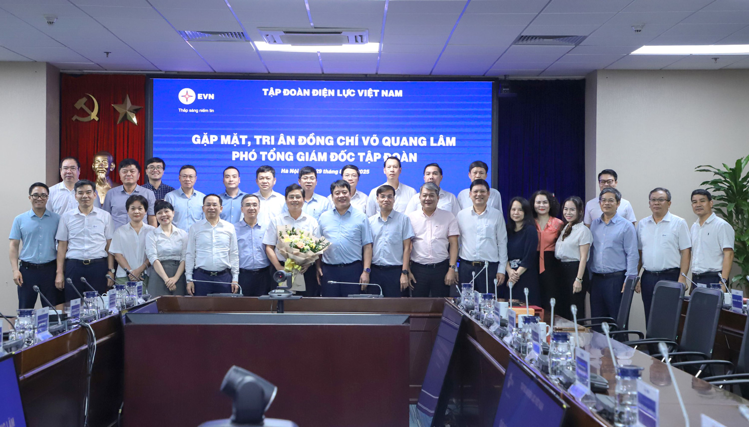 Lãnh đạo, cán bộ EVN tặng hoa chúc mừng Phó Tổng giám đốc EVN Võ Quang Lâm về nghỉ hưu theo chế độ