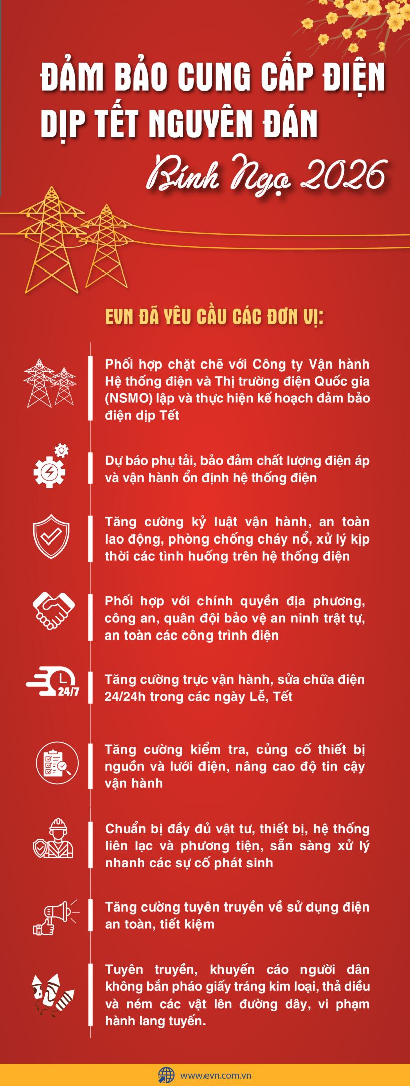 EVN triển khai các giải pháp chuẩn bị đảm bảo cung cấp điện dịp Tết Bính Ngọ
