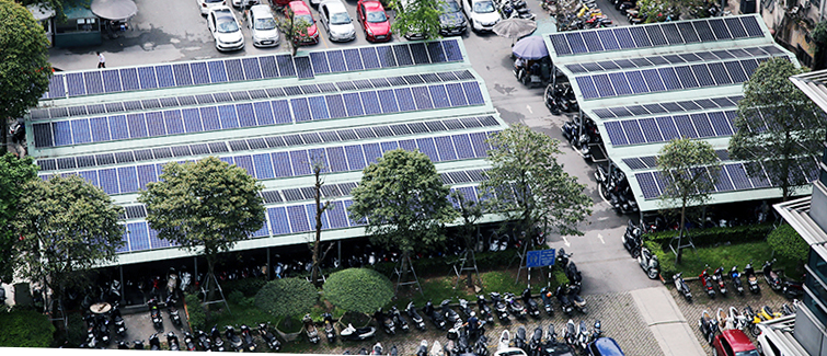Hệ thống điện mặt trời mái nhà trong khuôn viên trụ sở Tập đoàn Điện lực Việt Nam (Hà Nội)