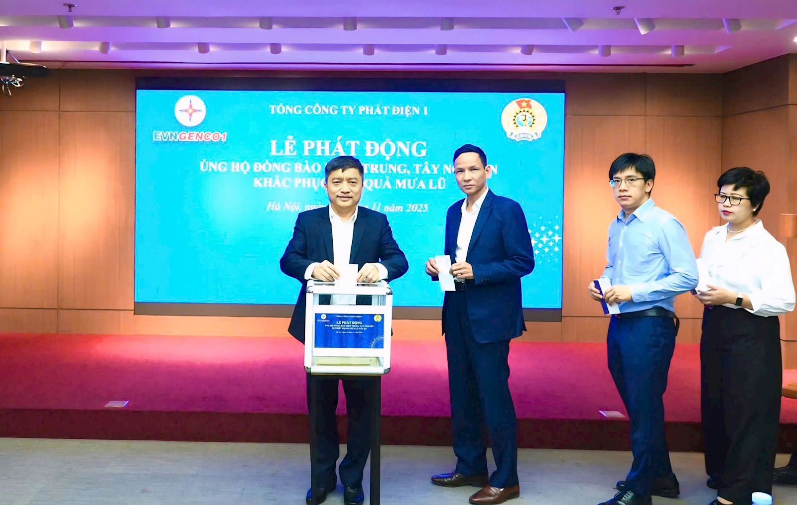 Hưởng ứng lời kêu gọi của Ủy ban Trung ương Mặt trận Tổ quốc Việt Nam, ngày 26/11 tại Hà Nội, Tổng công ty Phát điện 1 (EVNGENCO1) tổ chức phát động quyên góp ủng hộ đồng bào miền Trung – Tây Nguyên chịu ảnh hưởng nặng nề của mưa lũ.