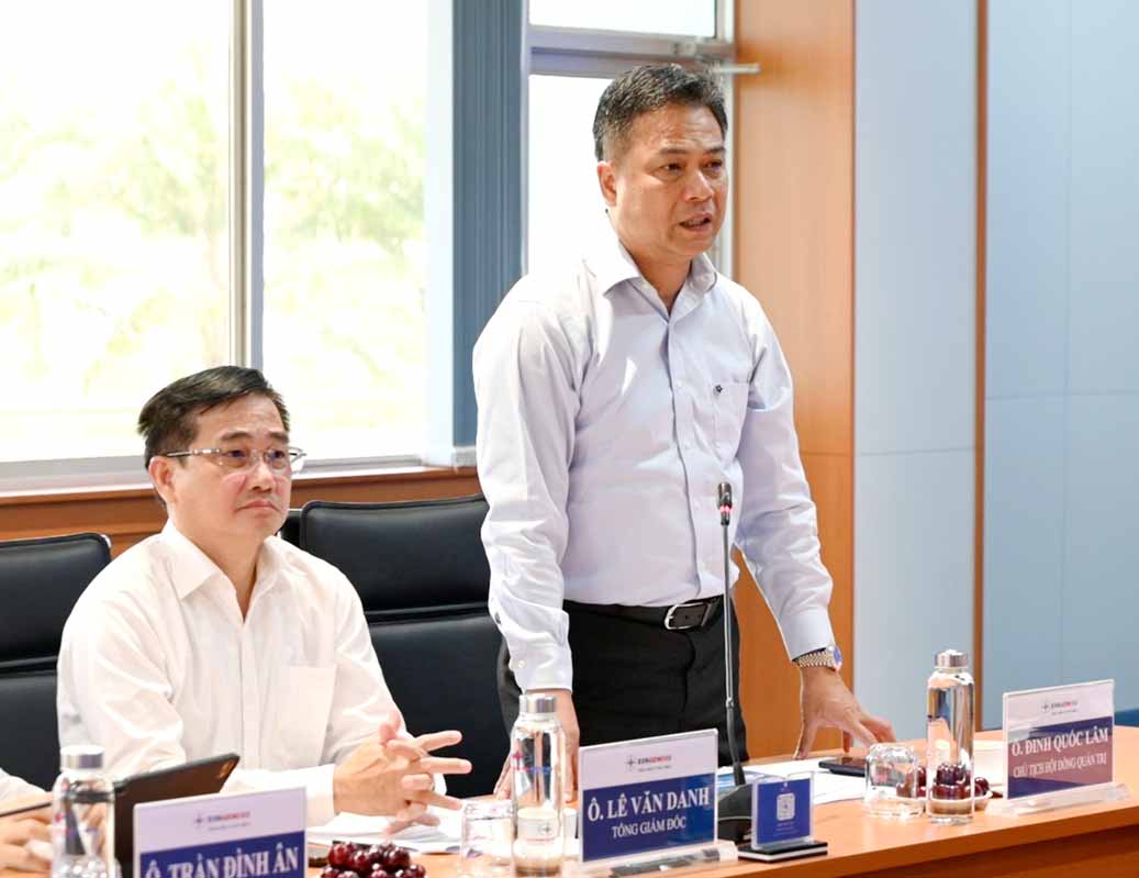 Tổng giám đốc EVNGENCO3 Lê Văn Danh báo cáo đoàn công tác tại buổi làm việc