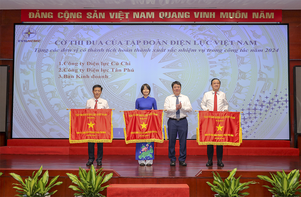 Ông Nguyễn Anh Tuấn, Phó Bí thư Đảng uỷ, Tổng giám đốc EVN trao Cờ thi đua của Uỷ ban Quản lý vốn nhà nước tại doanh nghiệp cho các tập thể của EVNHCMC