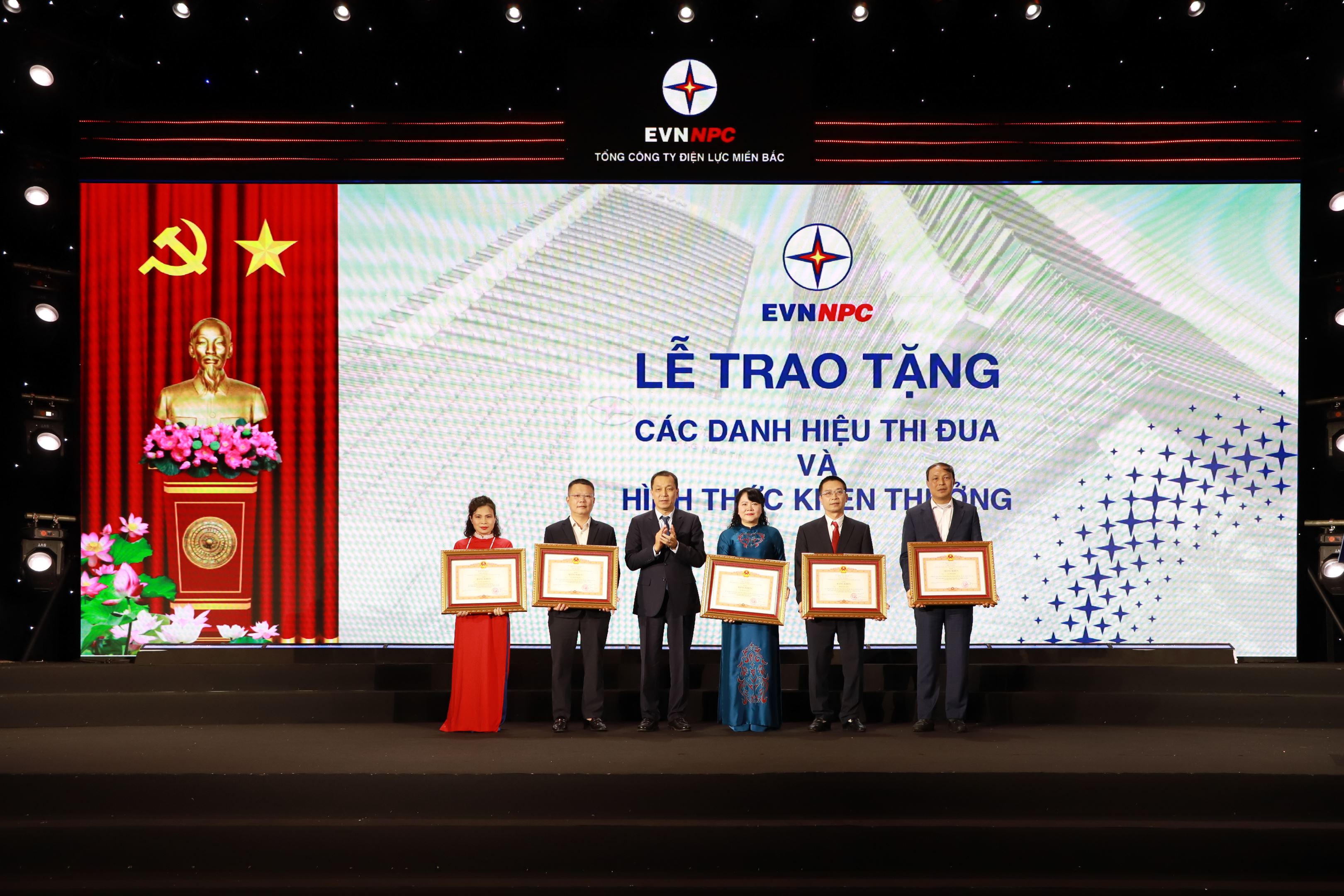 Phó Bí thư Thường trực Đảng ủy Tập đoàn Điện lực Việt Nam Nguyễn Hữu Tuấn trao Giấy khen của Đảng ủy EVN cho Đảng bộ Tổng công ty Điện lực miền Bắc