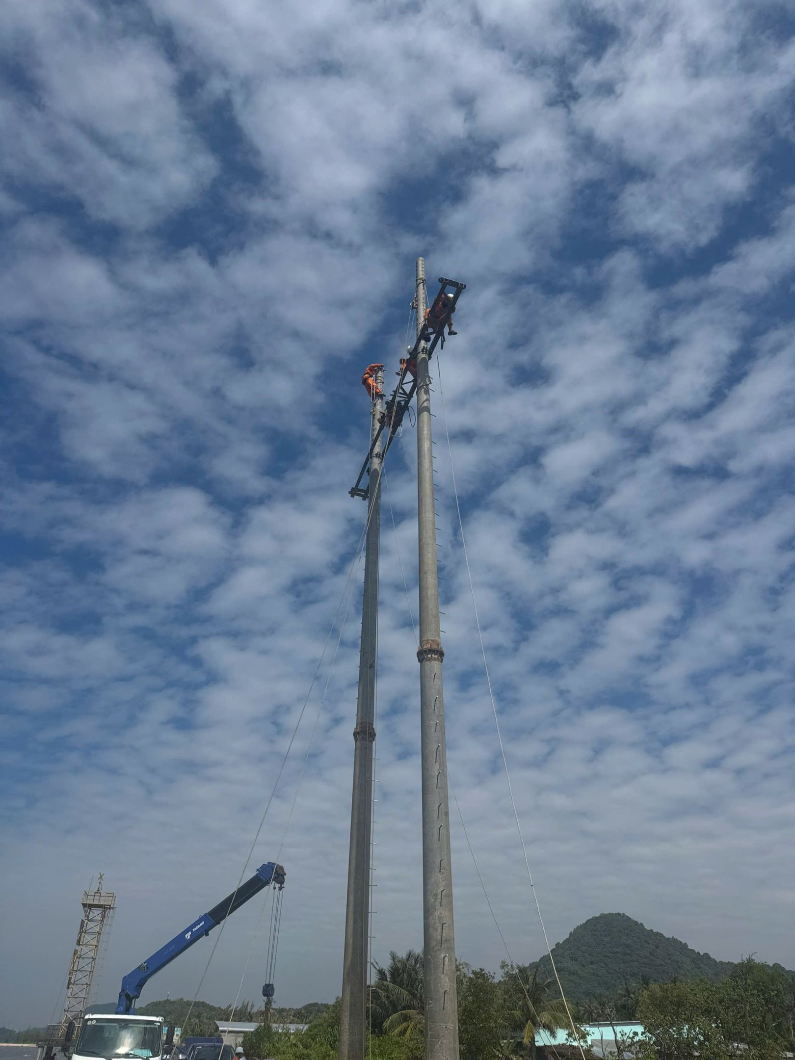 Đường dây 110kV trên không được xây dựng từ trụ đấu nối cáp ngầm tiếp bờ hiện hữu phía Hà Tiên đến vị trí xảy ra sự cố, với 4 khoảng trụ.