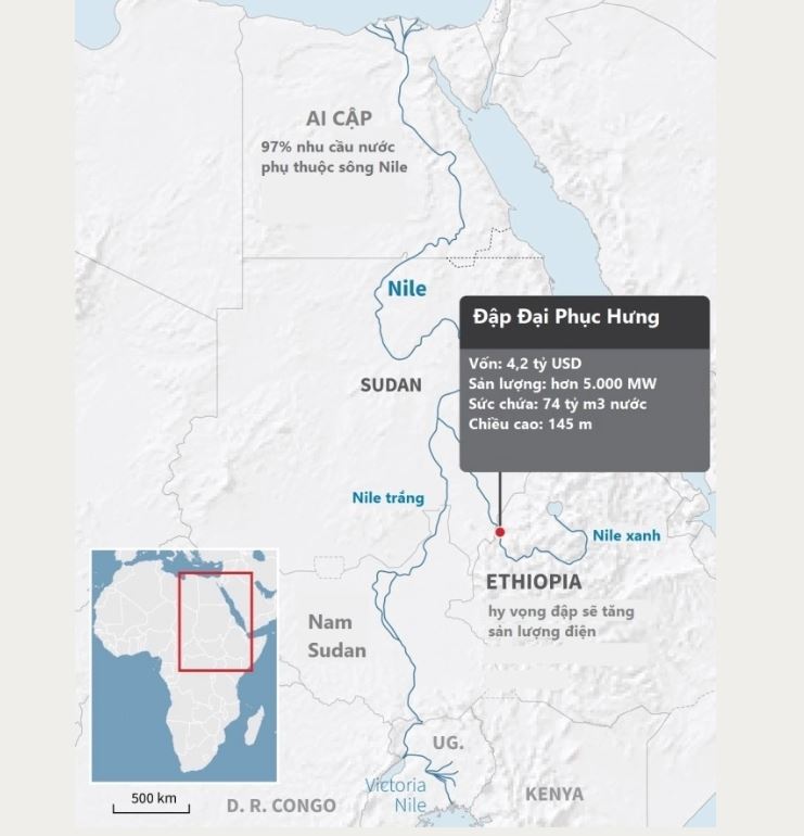 Vị trí đập Đại Phục Hưng. Đồ họa: AFP