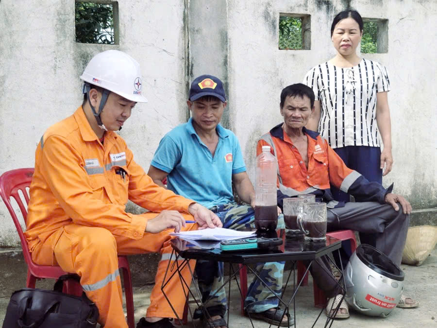 Đội Quản lý điện lực khu vực Nghi Sơn hỗ trợ gia đình ông Dương Văn Tâm sửa chữa, khắc phục điểm rò rỉ trong hệ thống dây dẫn sau công tơ