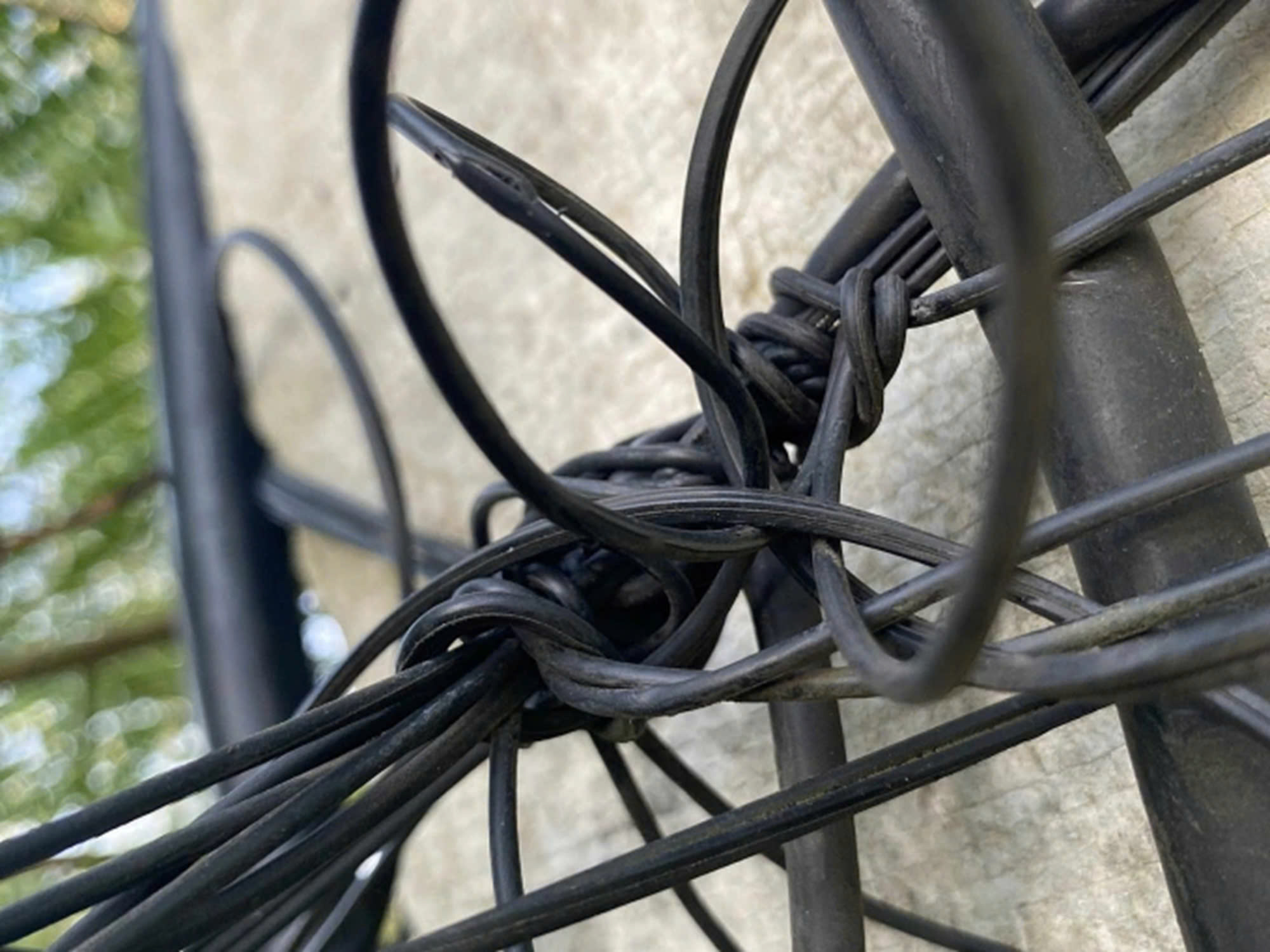 Sợi cáp viễn thông đi chung với đường điện của hộ ông Tâm không đúng kỹ thuật gây rách lớp vỏ dây điện