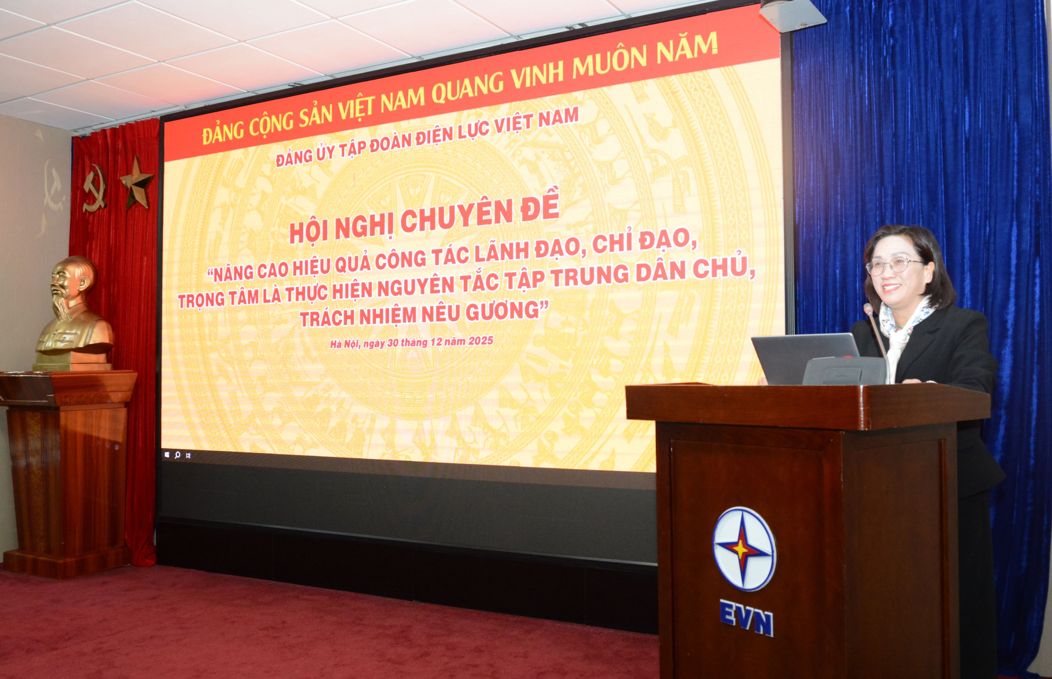 Ngày 30/12, Đảng ủy Tập đoàn Điện lực Việt Nam (EVN) đã tổ chức Hội nghị chuyên đề Nâng cao hiệu quả công tác lãnh đạo, chỉ đạo, trọng tâm là thực hiện nguyên tắc tập trung dân chủ, trách nhiệm nêu gương. Hội nghị được tổ chức theo hình thức trực tiếp kết hợp trực tuyến tới 110 điểm cầu truyền hình với gần 2.000 đại biểu tham dự.