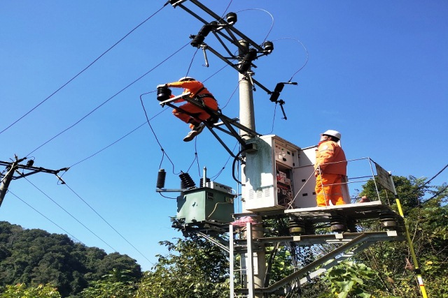 Công nhân Công ty Điện lực Bắc Kạn kiểm tra thiết bị và dường dây.