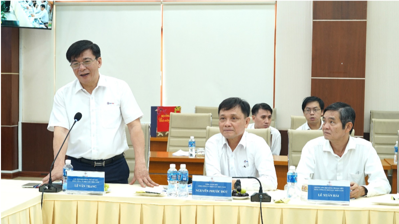 Làm việc với đoàn công tác, về phía EVNSPC có ông Lê Văn Trang – Chủ tịch HĐTV Tổng công ty, ông Nguyễn Phước Đức – Thành viên HĐTV kiêm Tổng giám đốc, các thành viên HĐTV, các Phó Tổng giám đốc, lãnh đạo các Ban chuyên môn, Văn phòng Tổng công ty, các đơn vị trực thuộc.