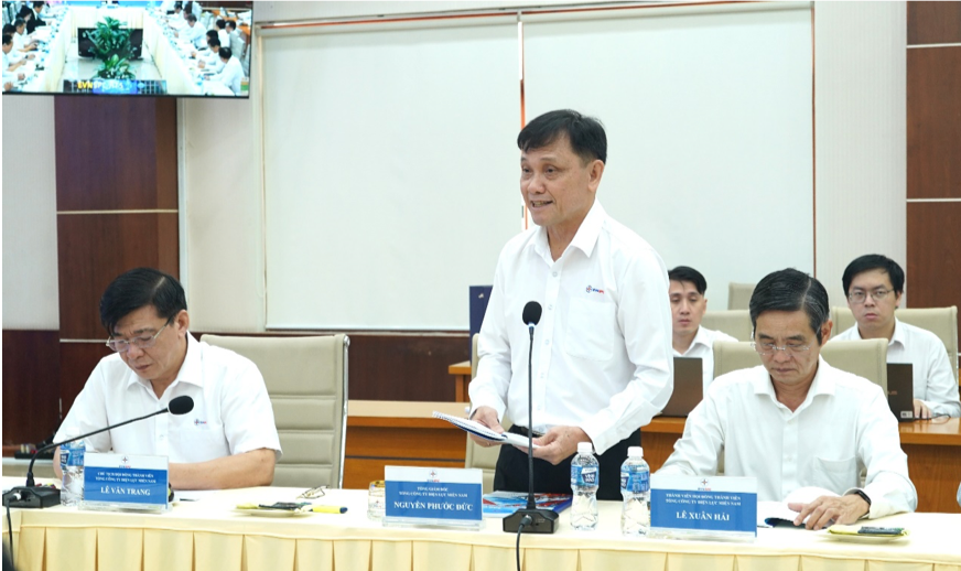 Tổng giám đốc EVNSPC Nguyễn Phước Đức báo cáo tại buổi làm việc
