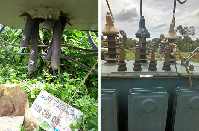 Những dây cáp điện của trạm biến áp bị trộm cắt