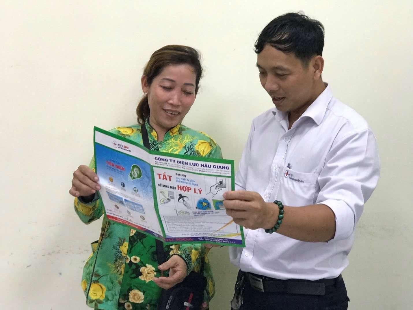Cán bộ Điện lực Hậu Giang tuyên truyền thực hiện tiết kiệm điện cho người dân
