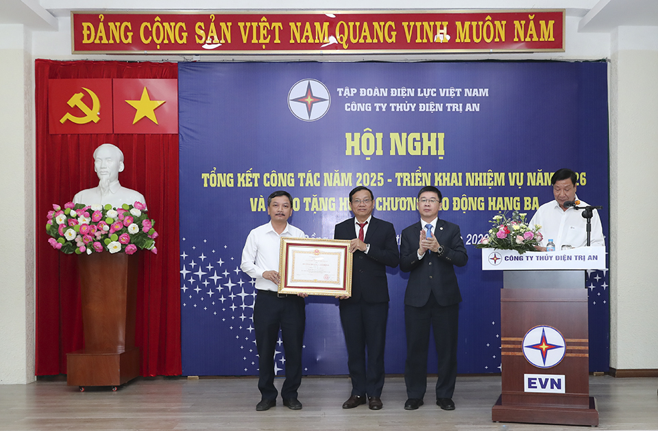 Hội nghị tổng kết công tác năm 2025, triển khai nhiệm vụ năm 2026 của Công ty Thuỷ điện Trị An được tổ chức sáng 12/1, tại Đồng Nai.