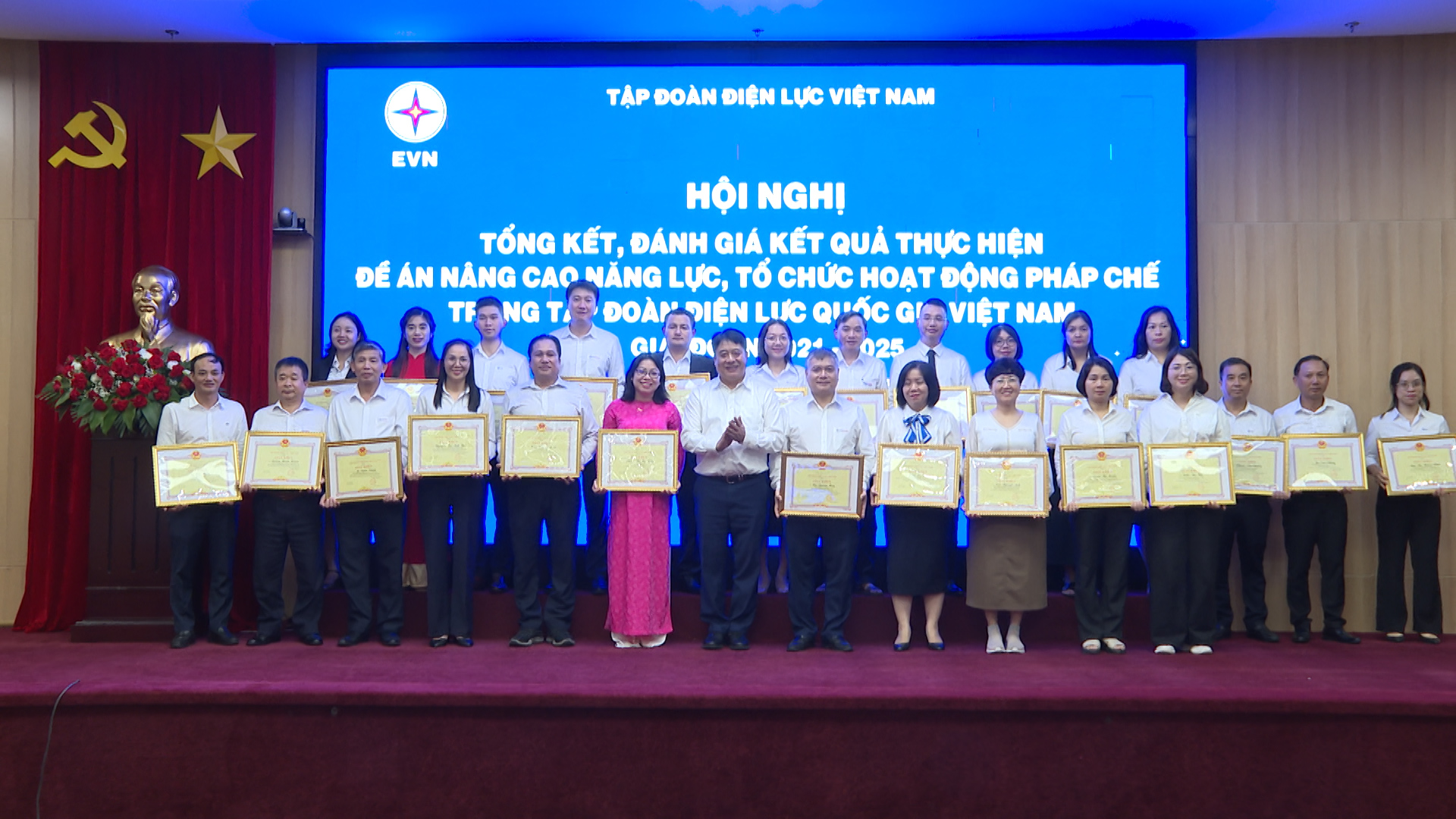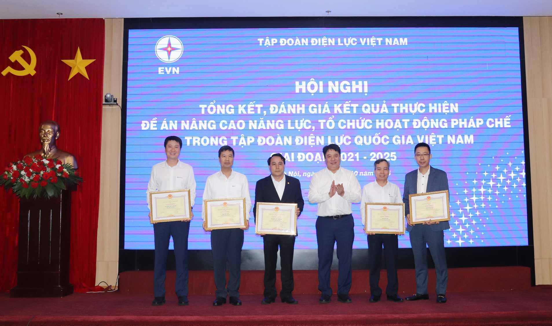 Trong khuôn khổ hội nghị, Tập đoàn Điện lực Việt Nam đã trao Giấy khen cho 5 tập thể và 25 cá nhân có thành tích xuất sắc trong công tác xây dựng thể chế giai đoạn 2021-2025.