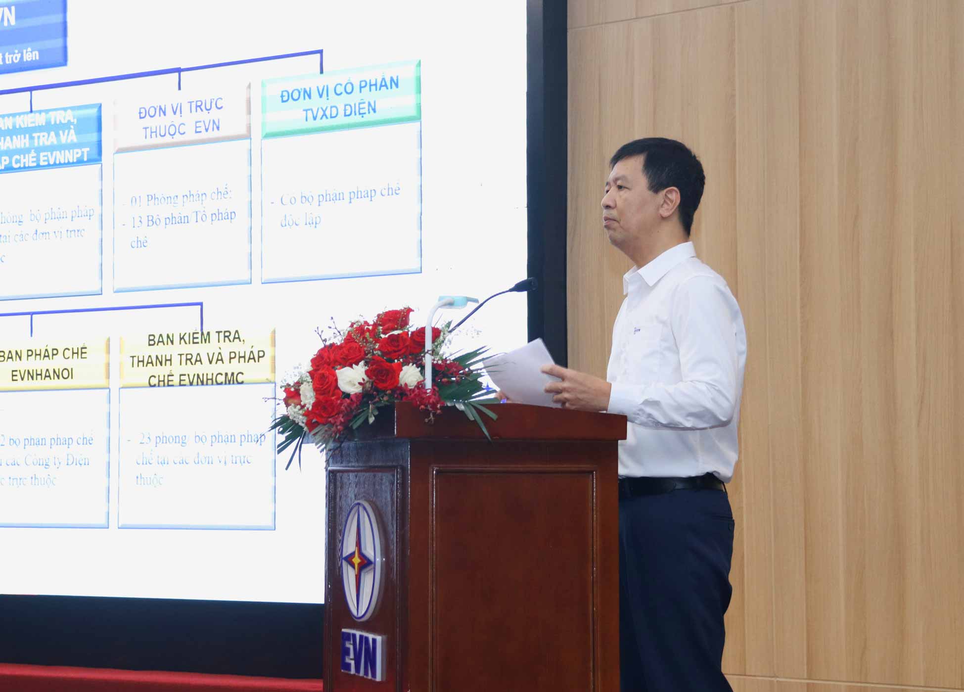 Bên cạnh đó, Vụ trưởng Ngô Đức Minh cũng đánh giá, dưới sự lãnh đạo của Đảng ủy và Tổng giám đốc EVN, công tác pháp chế đã đạt kết quả toàn diện, có định hướng dài hạn và tầm nhìn chiến lược rõ ràng. Tổ chức bộ máy pháp chế đã được hình thành đầy đủ ở các cấp, với nguồn nhân lực dồi dào, trình độ chuyên môn ngày càng hoàn thiện, đặc biệt trong lĩnh vực xây dựng và hoàn thiện hệ thống quy chế quản lý nội bộ.