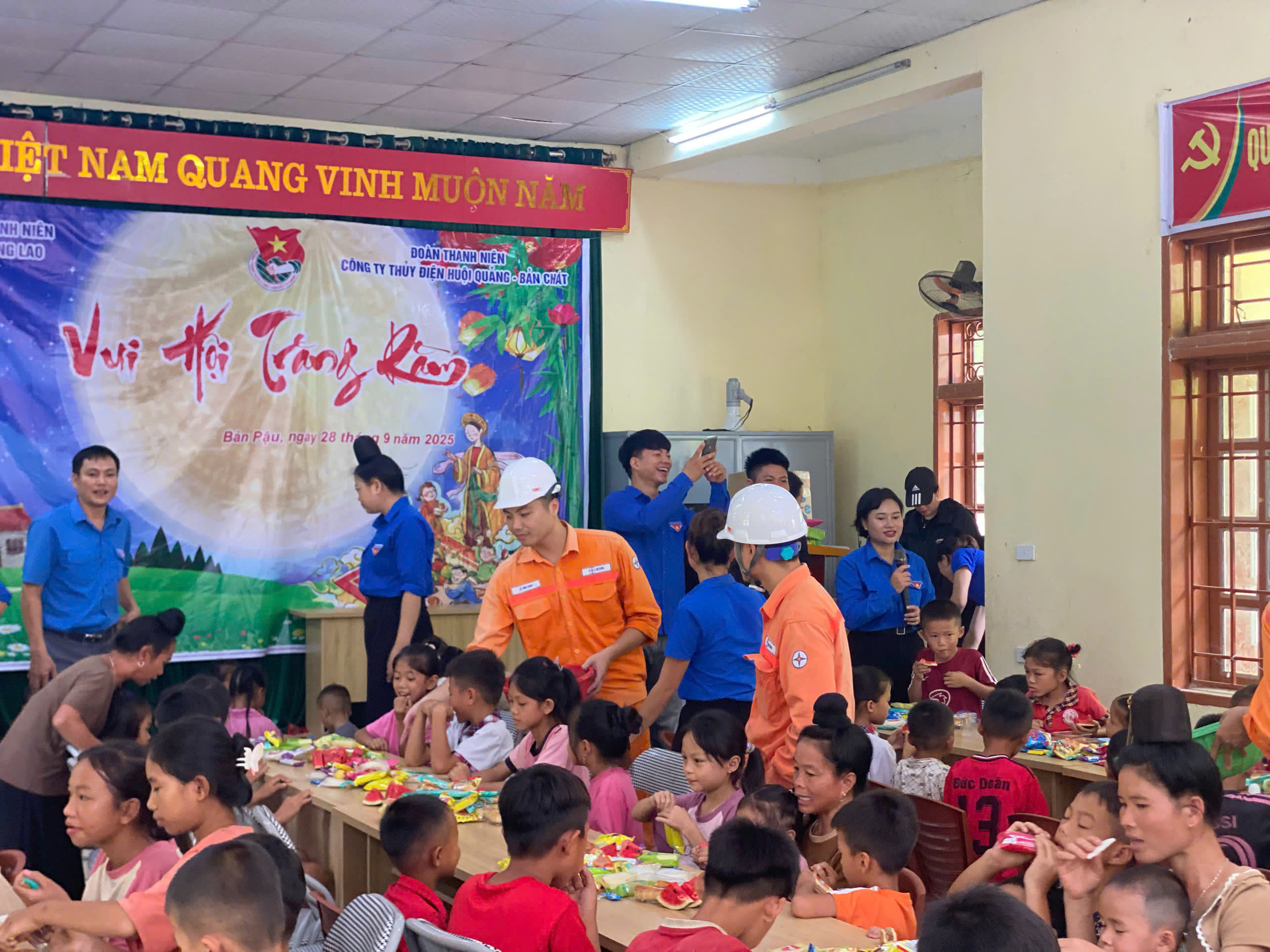 Bản Pậu, xã Chiềng Lao, tỉnh Sơn La còn nhiều khó khăn, thiếu thốn. Đoàn Thanh niên Công ty Thủy điện Huội Quảng - Bản Chát đã phối hợp cùng Đoàn Thanh niên xã Chiềng Lao tổ chức chương trình “Vui hội trăng rằm”, tặng bánh kẹo cho các em thiếu nhi địa phương.