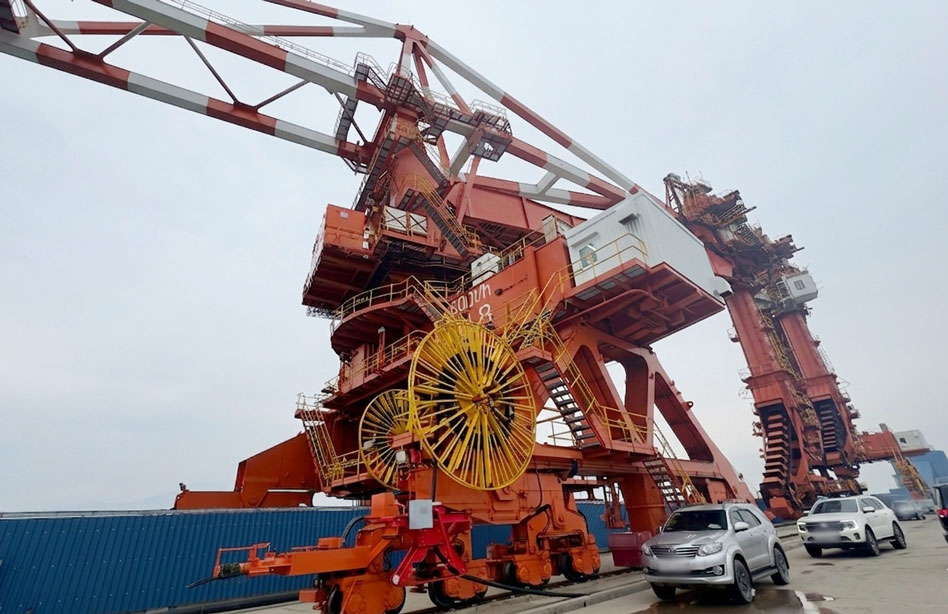 Hệ thống bốc dỡ than với cần cẩu và gàu xúc công suất lớn, đạt khoảng 1.600 tấn/giờ tại dự án Nhà máy Nhiệt điện Quảng Trạch I