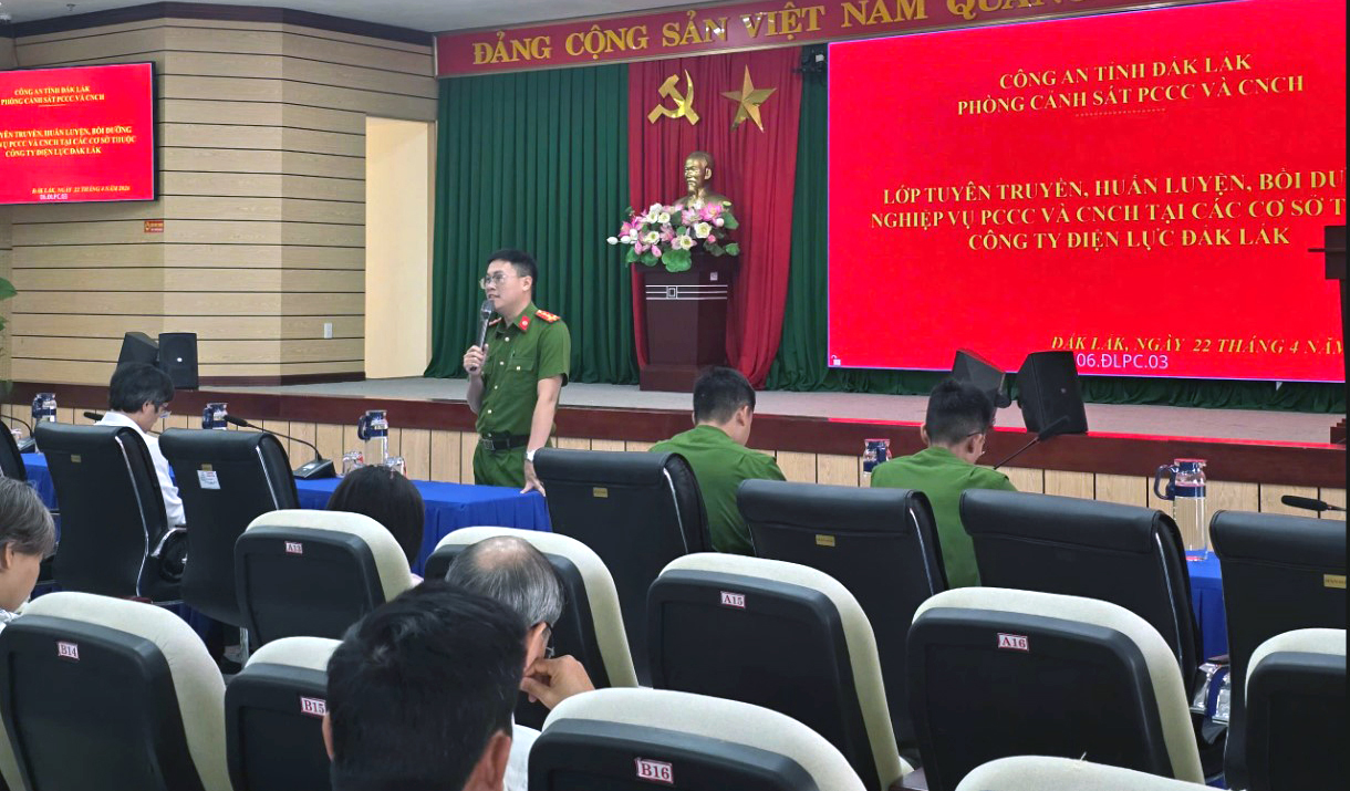 Ngày 22/4, Công ty Điện lực Đắk Lắk (PC Đắk Lắk) phối hợp với Phòng Cảnh sát PCCC và CNCH Công an tỉnh Đắk Lắk tổ chức khai mạc lớp huấn luyện, bồi dưỡng nghiệp vụ phòng cháy, chữa cháy và cứu nạn, cứu hộ (PCCC và CNCH) năm 2026. Chương trình được triển khai từ ngày 22/4 đến 09/5, với sự tham gia của 1.632 CBCNV công ty.