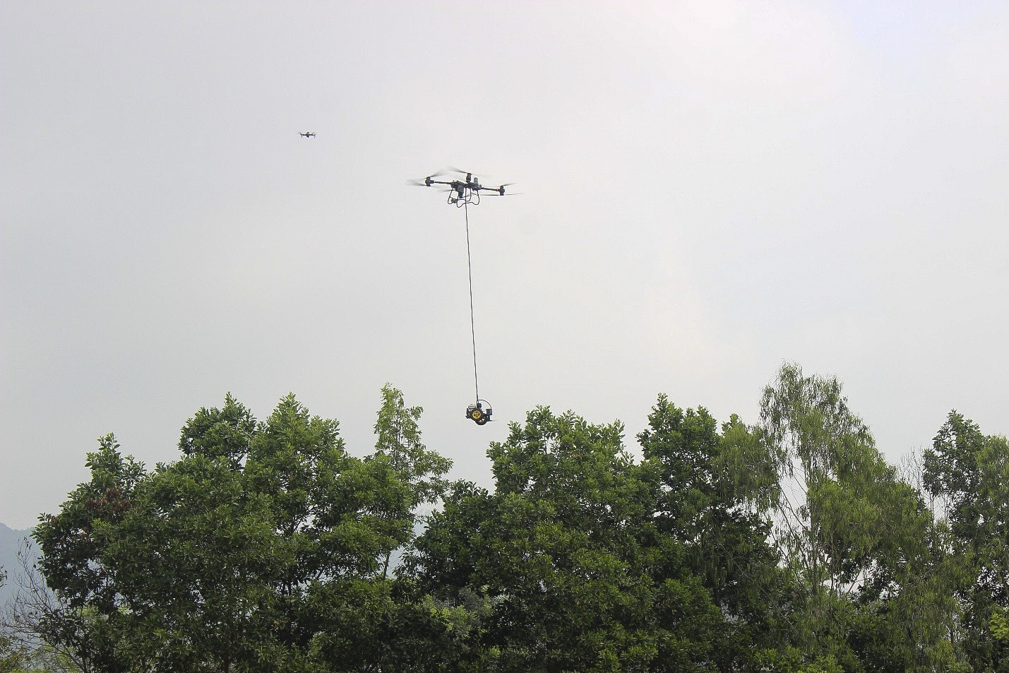 PTC2 đẩy mạnh ứng dụng thiết bị UAV trong công tác quản lý vận hàn. Trong ảnh: UAV được sử dụng để thực hiện tỉa ngọn cây cao ngoài hành lang tuyến đường dây