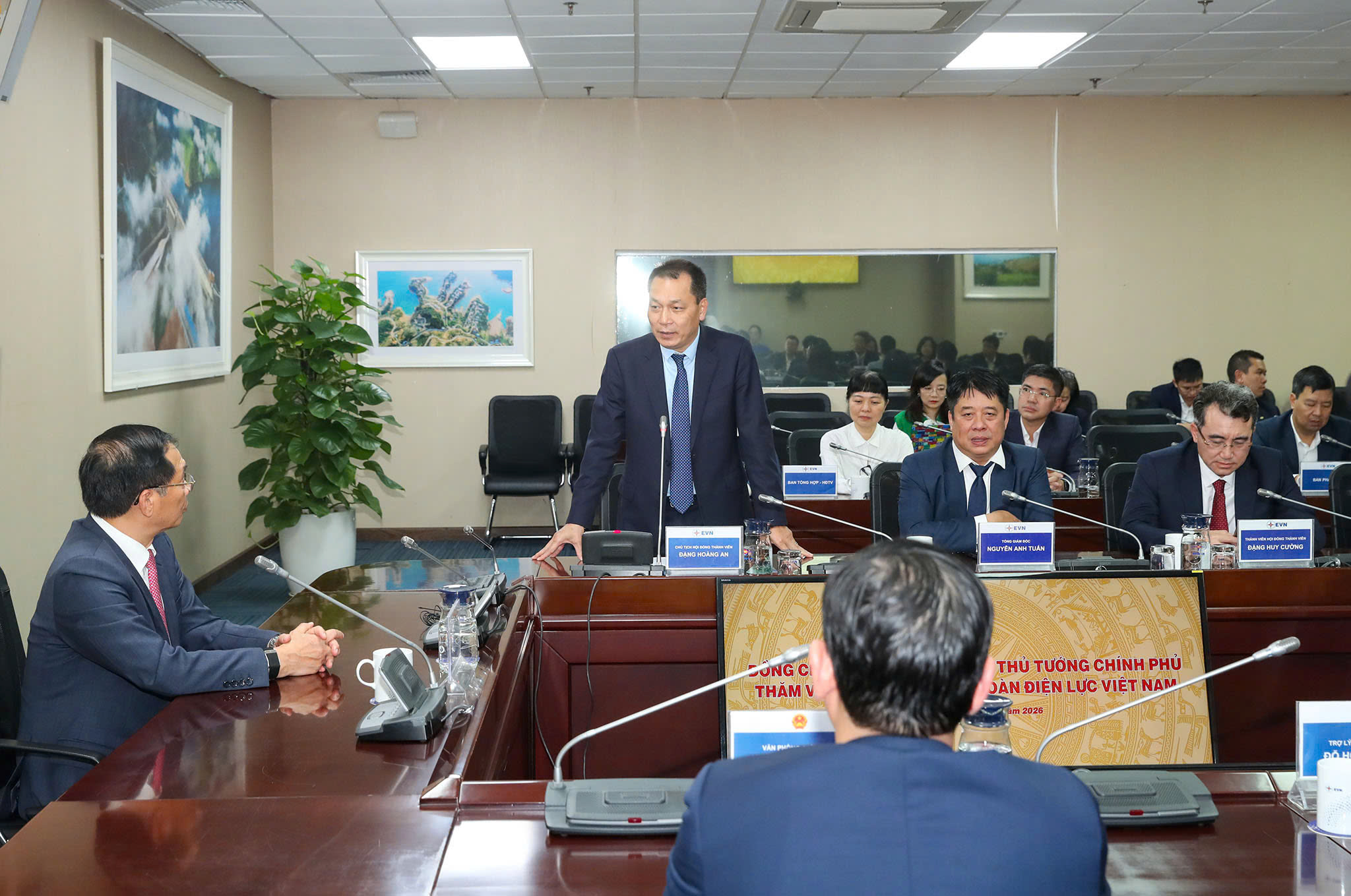 Thay mặt lãnh đạo và toàn thể cán bộ, công nhân viên Tập đoàn Điện lực Việt Nam, Chủ tịch Hội đồng thành viên EVN Đặng Hoàng An cảm ơn sự quan tâm, chỉ đạo sát sao của Chính phủ, Thủ tướng Chính phủ và cá nhân Phó Thủ tướng đối với hoạt động của Tập đoàn thời gian qua.