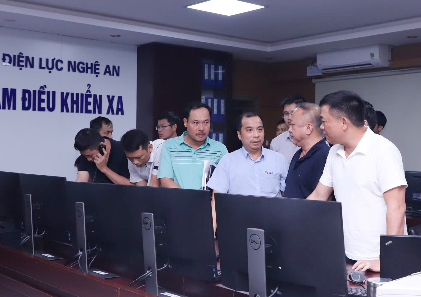 Phó Tổng giám đốc EVN Ngô Sơn Hải và đoàn công tác kiểm tra công tác ứng phó bão số 10 tại Trung tâm điều khiển xa, PC Nghệ An