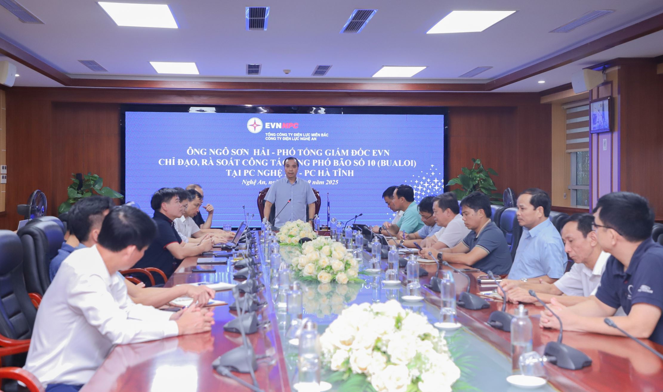 Phát biểu chỉ đạo tại buổi làm việc, Phó Tổng giám đốc EVN Ngô Sơn Hải ghi nhận và đánh giá cao sự chủ động, tinh thần trách nhiệm của PC Nghệ An và PC Hà Tĩnh trong công tác chuẩn bị, đồng thời yêu cầu các đơn vị rút kinh nghiệm thực tiễn từ các đợt thiên tai trước để nâng cao hiệu quả ứng phó bão số 10 (BUALOI).