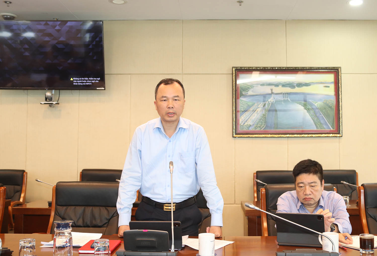 Ông Đỗ Quang Khải, Phó Giám đốc Ban Quản lý dự án Điện 1 (EVNPMB1) báo cáo tiến độ thực hiện các dự án tại cuộc họp