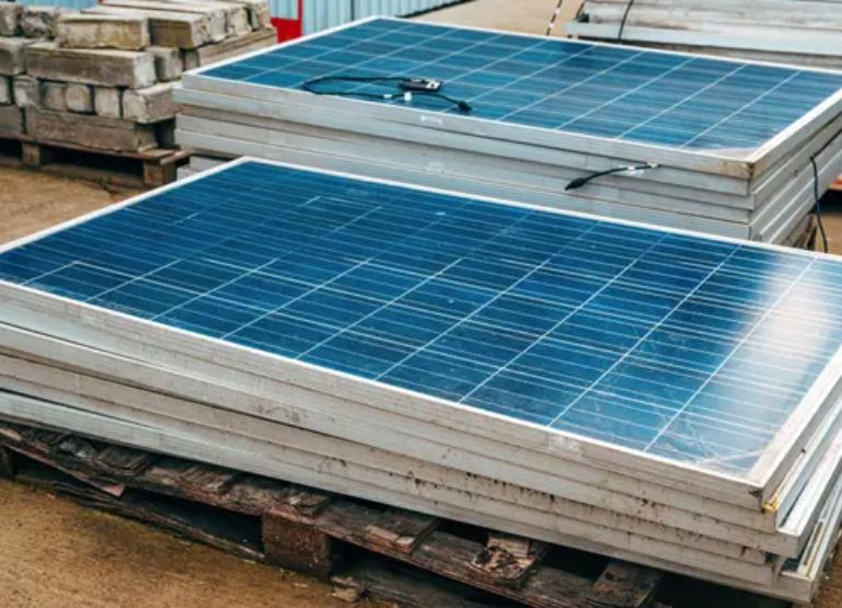 Các tấm quang điện cũ, lỗi thời trong sân nhà máy. (Ảnh minh họa)