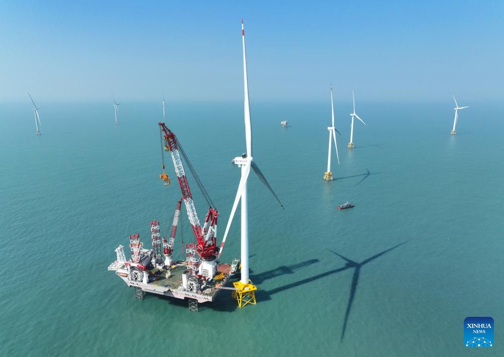 Tập đoàn Tam Hiệp cho biết, tuabin gió ngoài khơi mạnh nhất toàn cầu đã bắt đầu phát điện thương mại. Ảnh: Xinhua