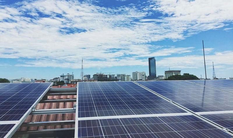 Hệ thống pin năng lượng mặt trời mái nhà của một khách sạn tại thành phố Huế. Ảnh: Nguyễn Tuấn