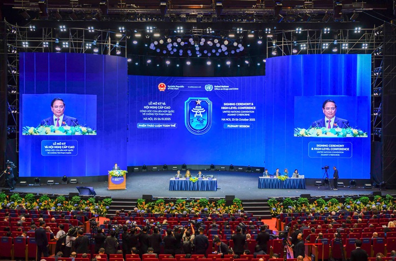 Chiều 25/10, tại Hà Nội, trong khuôn khổ Lễ mở ký Công ước của Liên Hợp Quốc về chống tội phạm mạng đã diễn ra Phiên thảo luận cấp cao do Phó Thủ tướng Chính phủ Bùi Thanh Sơn và bà Ghada Waly, Giám đốc điều hành UNODC đồng chủ trì; với sự tham dự của Thủ tướng Chính phủ Phạm Minh Chính, Tổng Thư ký Liên Hợp Quốc Antonio Guterres, lãnh đạo Nhà nước, Chính phủ và đại diện của hơn 110 quốc gia; và nhiều tổ chức quốc tế, khu vực.