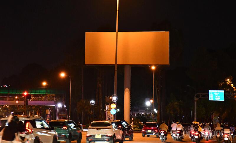 Bảng quảng cáo tuyên truyền, quảng cáo tại góc đường Hoàng Văn Thụ - Phan Đình Gót (khu vực sân bay Tân Sơn Nhất, phường Phú Nhuận) đã tắt điện từ 22 giờ đến sáng. Ảnh: Thanh Minh.