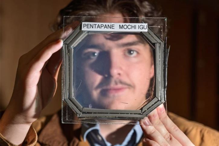 Vật liệu cách nhiệt cửa sổ mới mang tên MOCHI, được gắn lên một tấm nhựa mỏng. Ảnh: Glenn J. Asakawa/CU Boulder