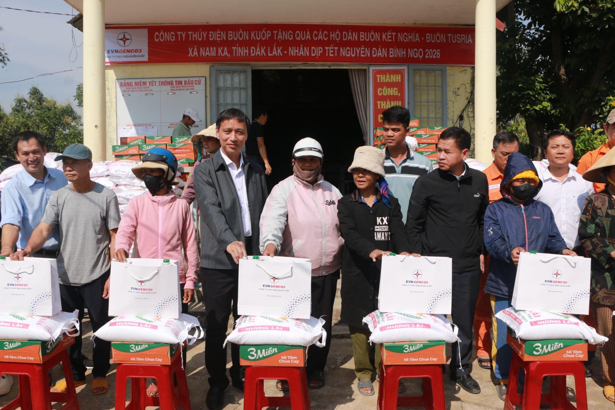 Cùng ngày, Công ty Thủy điện Buôn Kuốp tổ chức chương trình thăm hỏi, tặng quà Tết cho bà con buôn kết nghĩa Buôn Tusria, xã Nam Ka, tỉnh Đắk Lắk với tổng giá trị hơn 117 triệu đồng. Những món quà được chuẩn bị chu đáo, thiết thực, góp phần giúp bà con vơi bớt khó khăn, đón Tết cổ truyền thêm đủ đầy, trọn vẹn.