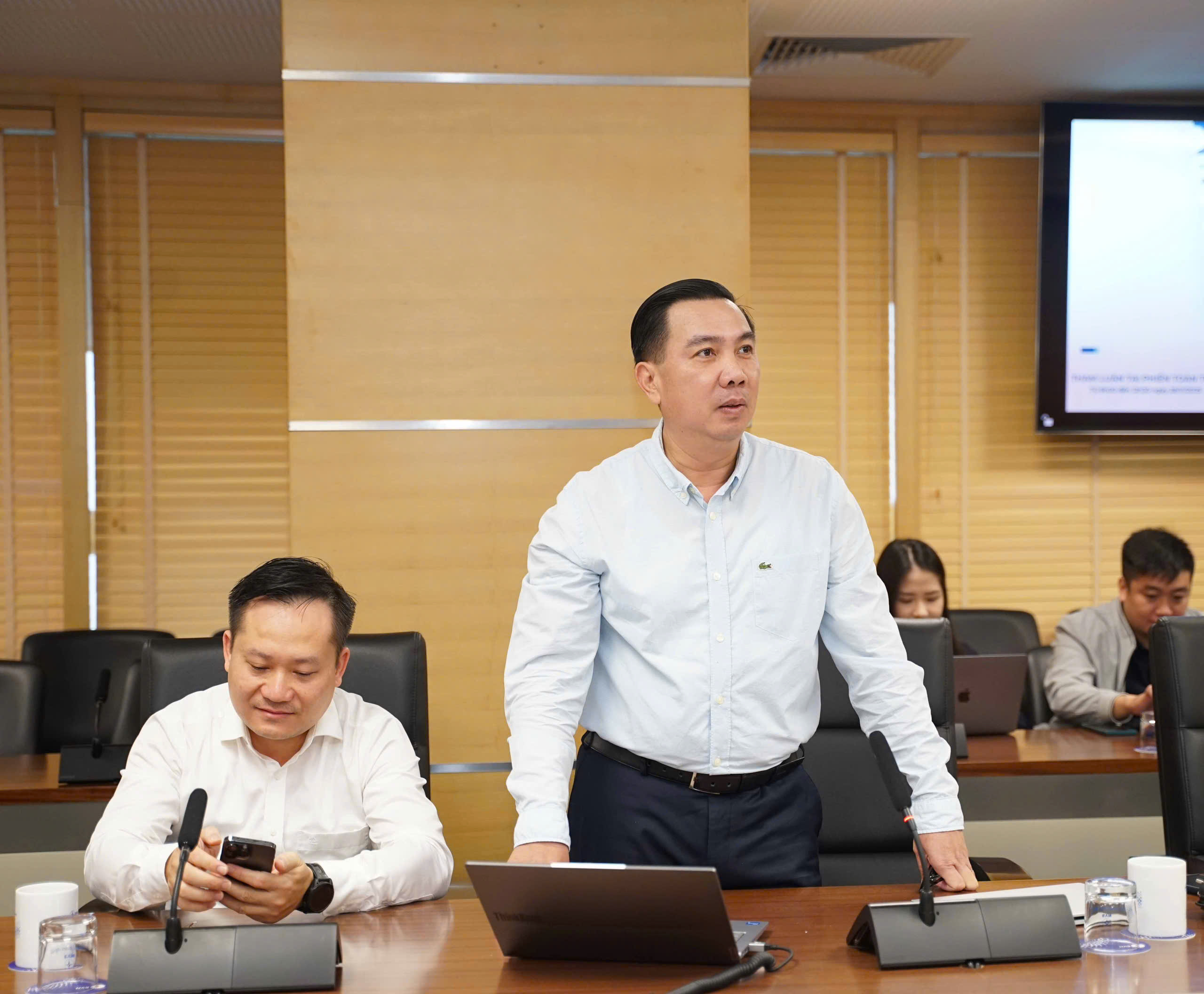 Trưởng Ban Khoa học công nghệ và Chuyển đổi số EVN Nguyễn Xuân Tuấn (đứng) báo cáo về tiến độ chuẩn bị tổ chức Hội nghị