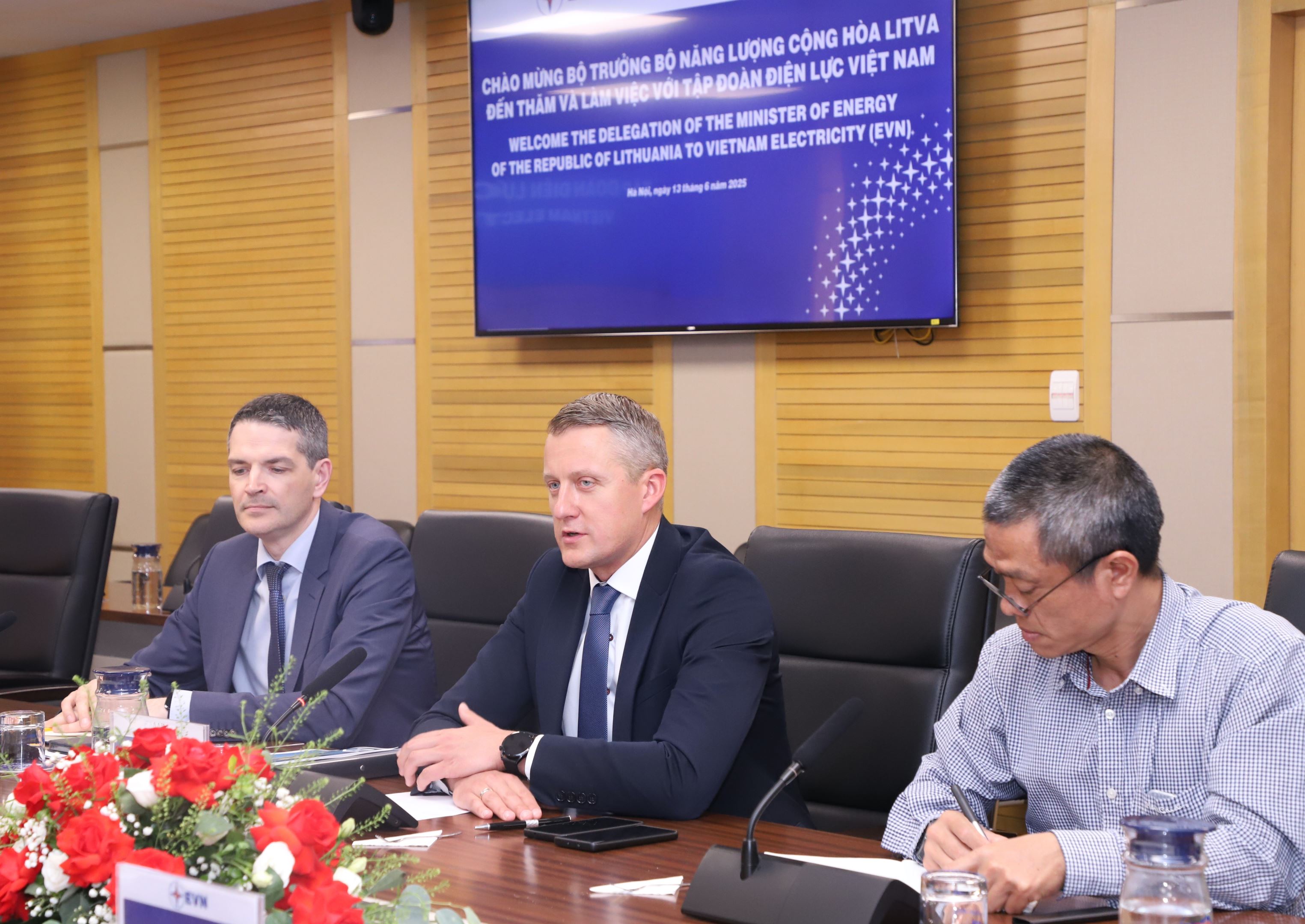 Buổi làm việc của Bộ trưởng Bộ Năng lượng Cộng hòa Litva với lãnh đạo Tập đoàn Điện lực Việt Nam diễn ra bên lề chuyến thăm chính thức Việt Nam của Tổng thống Cộng hòa Litva Gitanas Nauseda.
