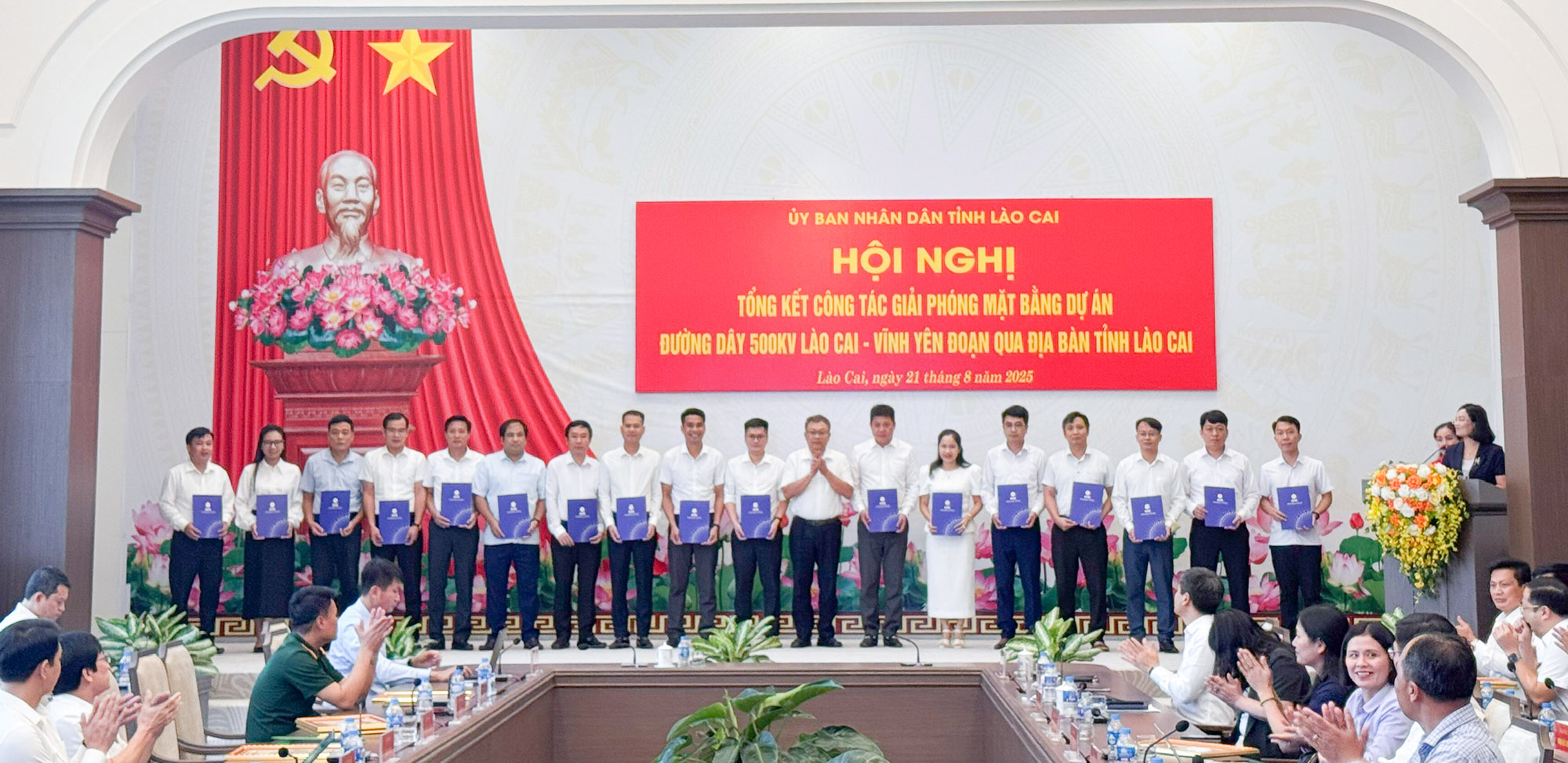 Trong khuôn khổ hội nghị, Ủy ban Nhân dân tỉnh Lào Cai tặng Bằng khen cho 38 tập thể, 121 cá nhân có thành tích xuất sắc trong việc đẩy nhanh tiến độ thực hiện công tác giải phóng mặt bằng dự án đường dây 500kV Lào Cai-Vĩnh Yên, đoạn qua tỉnh Lào Cai; EVN trao khen thưởng tới 18 tập thể của tỉnh Lào Cai đã tích cực phối hợp, hỗ trợ chủ đầu tư trong công tác BT-GPMB của dự án.