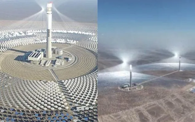 Trung Quốc xây dựng hai tòa tháp năng lượng mặt trời tạo ra điện từ ánh sáng mặt trời và muối nóng chảy (Ảnh: Bol News)