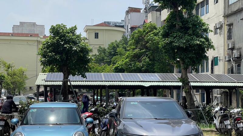 Hệ thống năng lượng mặt trời được lắp đặt trên mái che nhà để xe CBCNV