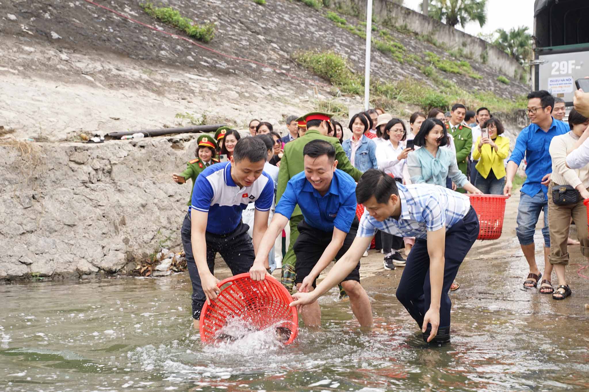 Các hoạt động bảo vệ môi trường, hướng tới phát triển bền vững được tuổi trẻ EVN tích cực triển khai. Trong ảnh: Đoàn Thanh niên EVN tham gia thả khoảng 2 tấn cá giống xuống lòng hồ Thủy điện Hòa Bình (tỉnh Phú Thọ) nhằm phục hồi nguồn lợi thủy sản và cân bằng hệ sinh thái khu vực lòng hồ.