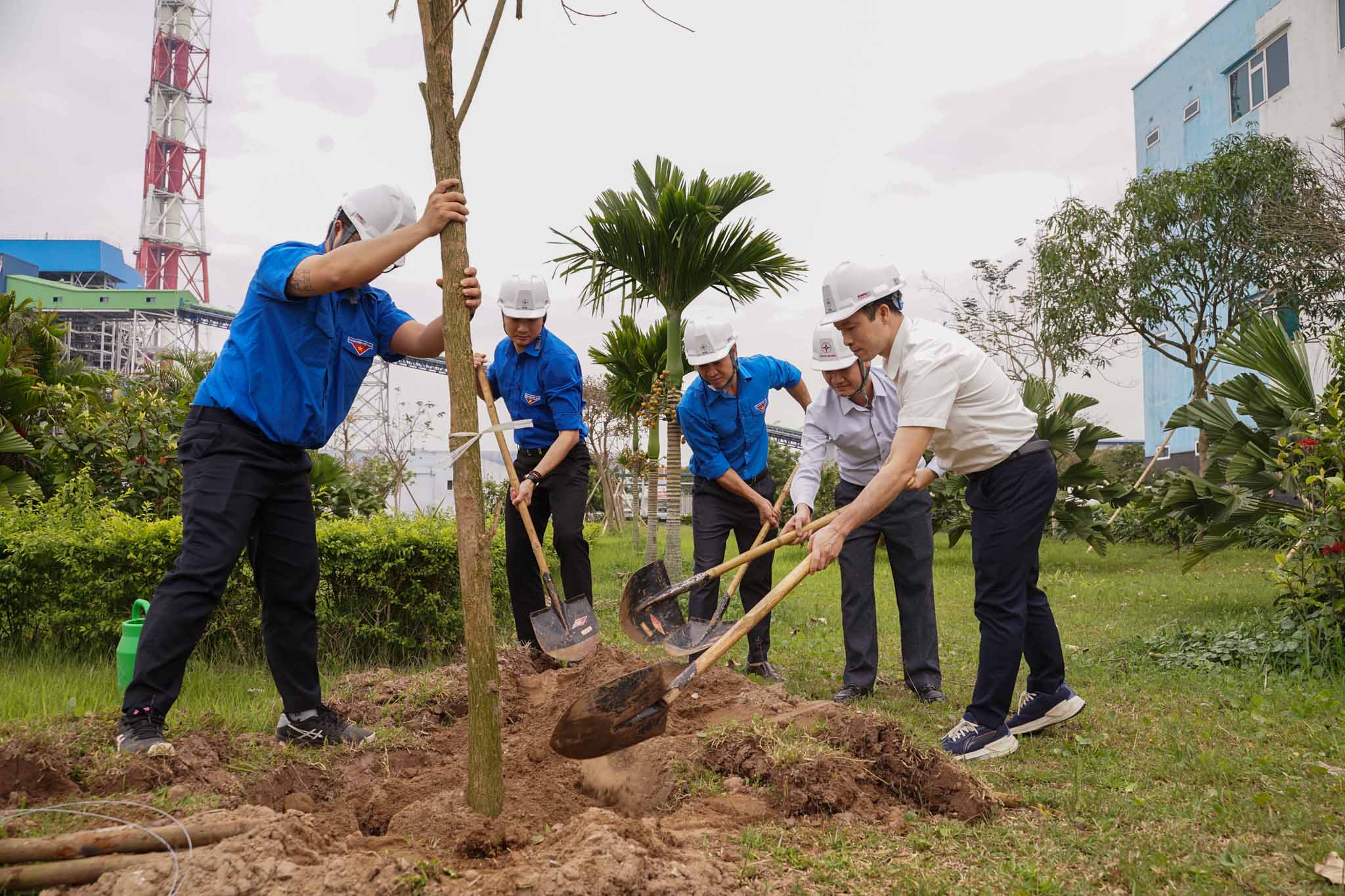 Đoàn Thanh niên EVN phối hợp với Công ty Nhiệt điện Thái Bình tổ chức trồng 1.000 cây trong khuôn viên, góp phần xanh hoá Nhà máy (tỉnh Hưng Yên).
